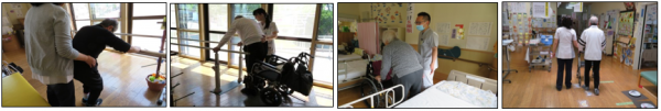 「自宅で生活できる能力」‥日常生活動作(食事・排泄・入浴・整容・更衣)が行えるかに注目し、実際に「している動作」や「頑張ればできる動作」が何かスタッフと共に見つけ、上手にできる方法を考え、ご自分でできるよう援助します。